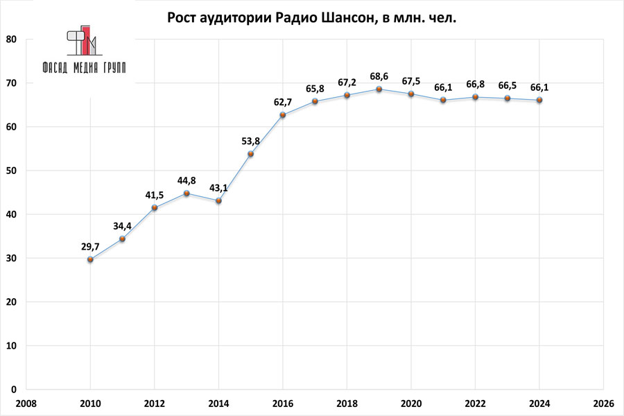 Показатели аудитории «Радио Шансон» по России: