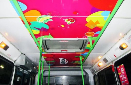 Приводим примеры монтажа рекламы на/в автобусах:
