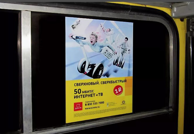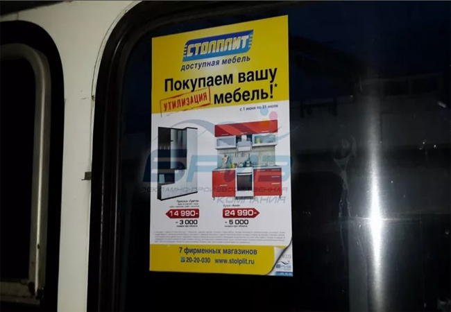 Рекламные стикеры в транспорте на фото выше